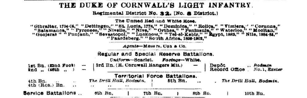 of the Duke of Cornwall's Light Infantry. A list of their names