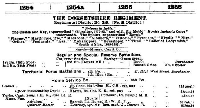 amount regarding officers of the Dorsetshire Regiment is available through the following organisations and
