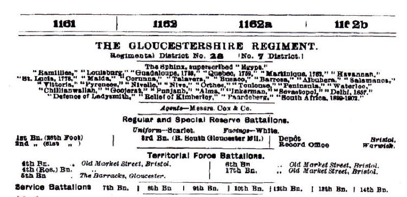 During the Great War the Gloucestershire Regiment was organised
