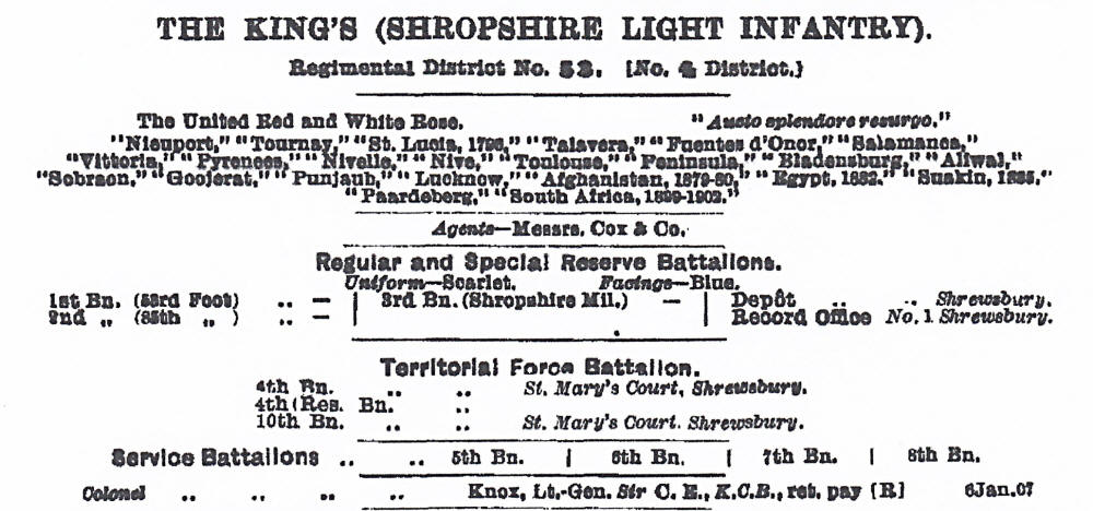(Shropshire Light Infantry) Regimental Officers Rolls of Honour